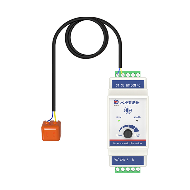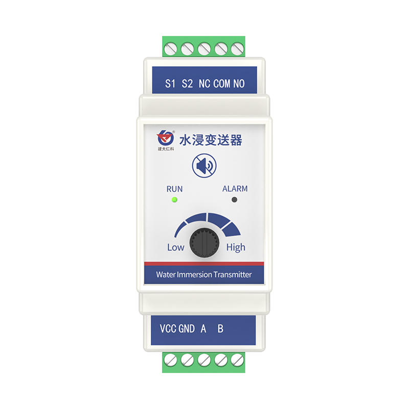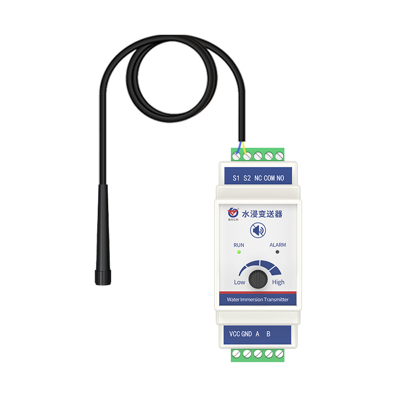 该水浸变送器带有蜂鸣器报警功能及按键复位功能。带一个旋钮,可通过此旋钮调节设备灵敏度。产品采用独有的交流采样技术,确保测量电极长期保持灵敏,避免电极极化,寿命长,检测可靠。广泛应用于通讯基站、宾馆、饭店、机房、图书馆、档案库、仓库、设备机柜以及其它需积水报警的场所。