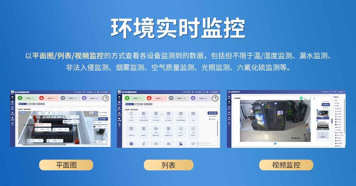 动环监控软件平台采用B/S 架构,完全Web方式管理和浏览,支持在Linux系统和Windows系统上运行,适用于对机房/档案馆/变电站等场合的动力系统、环境系统、安防系统、门禁系统、视频系统进行集中监测及远程控制。