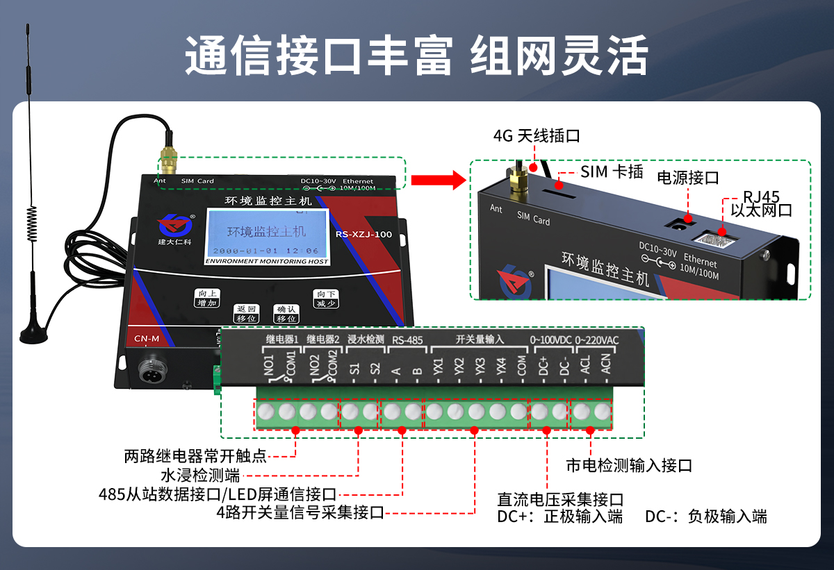 | 4路开关量信号输入 | 可检测干接点通断状态 | 外接无源干接点,响应时间≤0.2s |