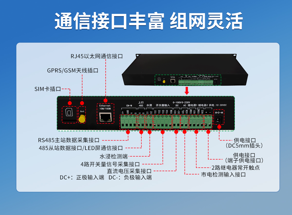 | 4路开关量信号输入 | 可检测干接点通断状态 | 外接无源干接点,响应时间≤0.2s |