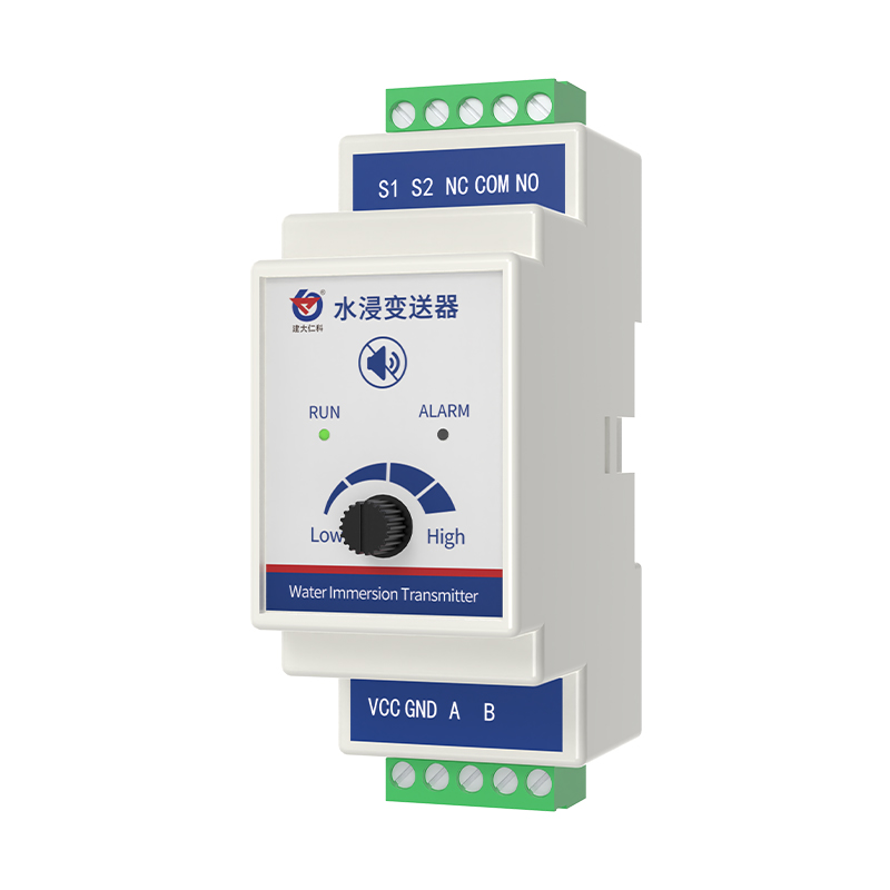 该水浸变送器带有蜂鸣器报警功能及按键复位功能。带一个旋钮,可通过此旋钮调节设备灵敏度。产品采用独有的交流采样技术,确保测量电极长期保持灵敏,避免电极极化,寿命长,检测可靠。广泛应用于通讯基站、宾馆、饭店、机房、图书馆、档案库、仓库、设备机柜以及其它需积水报警的场所。
