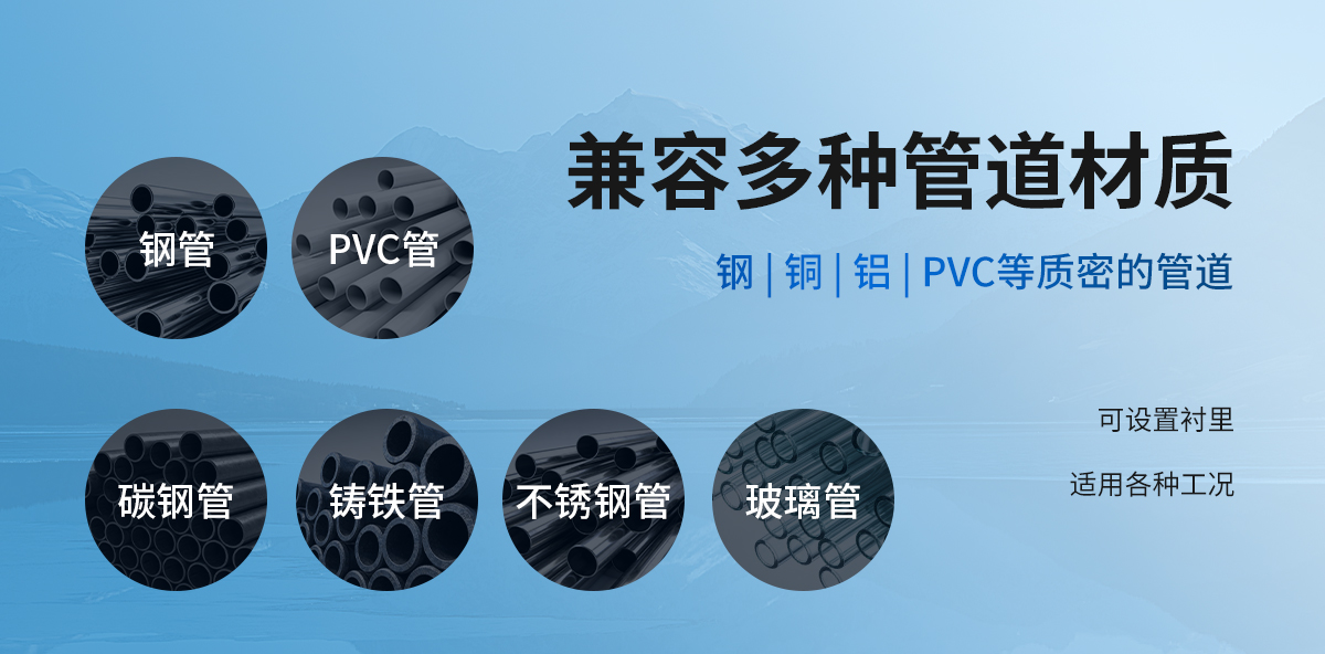 | 管道情况 | 管材 | 钢、铜、铝、PVC等质密的管道,可设置衬里 |