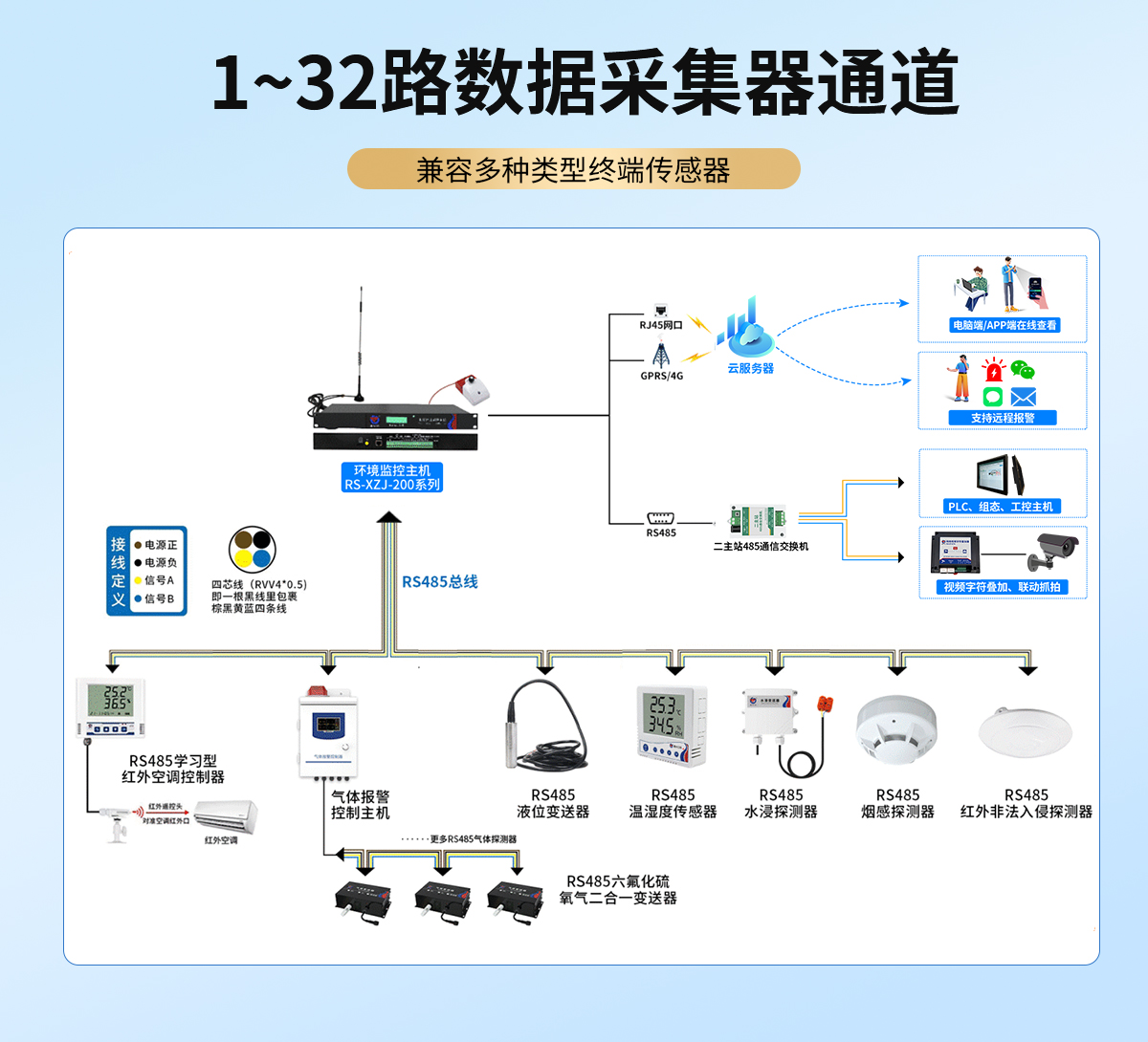 小型机房环境监控主机(1U版)是一款专用于机房环境场所的多功能监控主机,利用丰富的下行通信接口,可兼容采集多种类型终端传感器的测定数据,并利用以太网/4G/RS485等上行通讯接口,与上层应用平台进行信息交互,方便机房环境的管理。