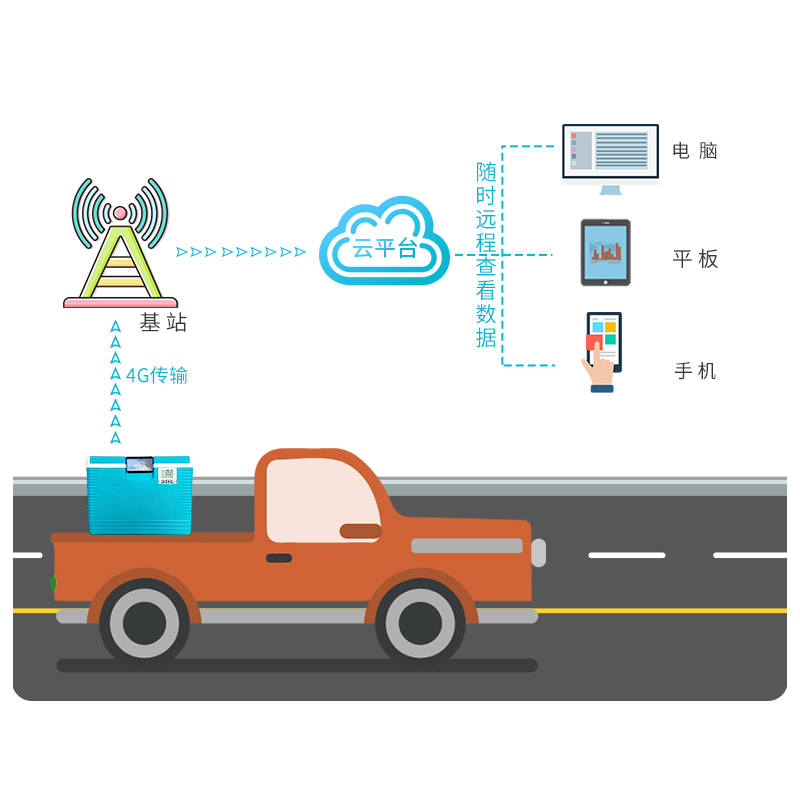 壁挂式保温箱温湿度监测系统解决方案主要由冷链保温箱、壁挂式保温箱温湿度记录仪以及环境监控云平台组成。通过箱体内部温湿度感应探头读取温湿度,并将数据记录在挂于保温箱体外的.温湿度记录仪中,借助4G信号将监测数据.上传至环境监控云平台。