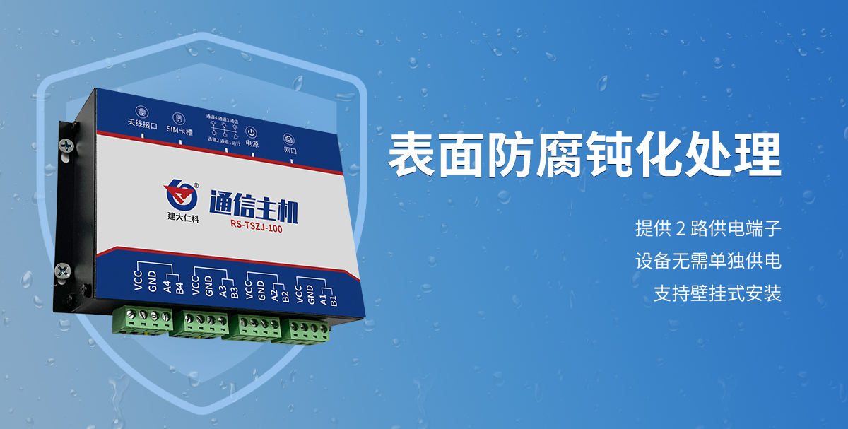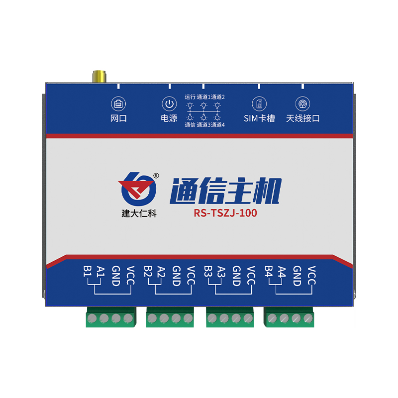 通信主机主要用于平台与传感器设 备之间的通信连接,可网口或4G上 传数据,供电10~30V, 4路下行485接 口,每路接口可单独设置不同的波特 率,最多可接255台485设备。