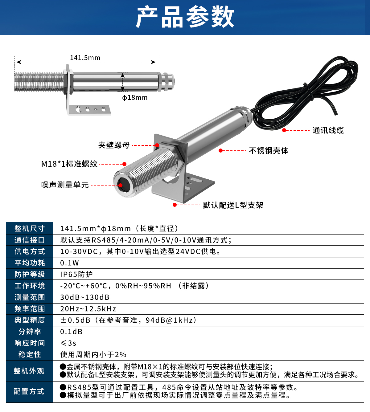 | 噪声精度 | ±0.5dB(在参考音准,94dB@1kHz) | |